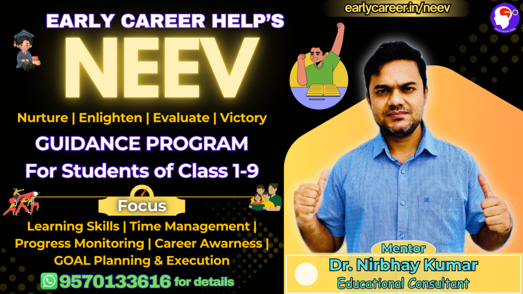 The NEEV Program by Early Career Help, designed by Dr. Nirbhay Kumar (IIT alumnus and leading educational consultant), aims to give students of Classes 1–9 a strong foundation for lifelong success.